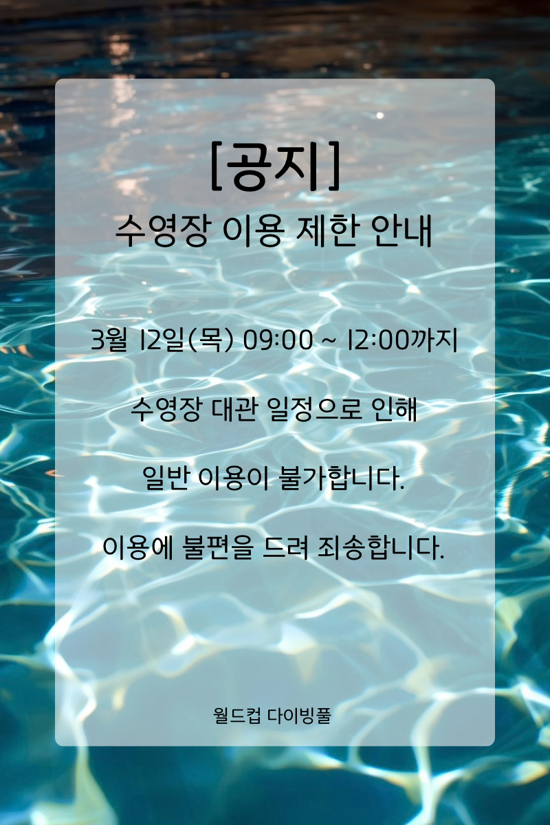 강사도 교육생도, 월드컵다이빙 풀과 함께하세요